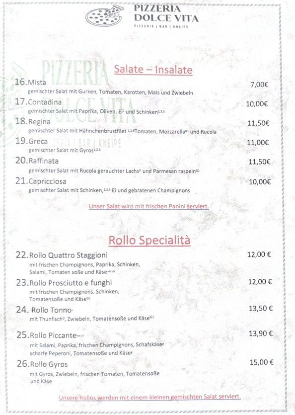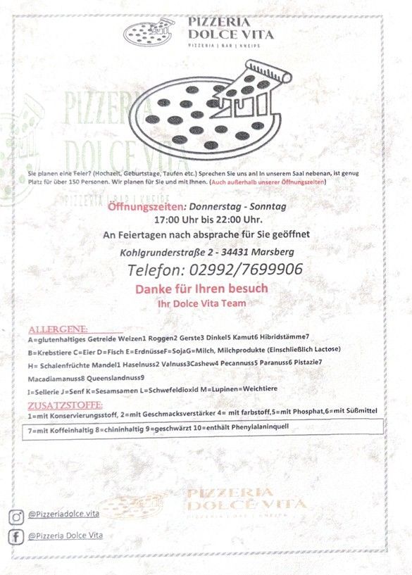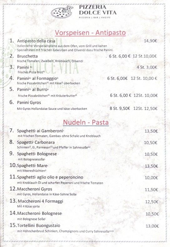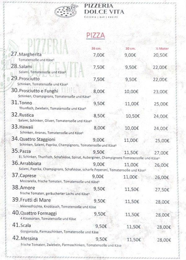 Entdecken Sie die authentischen Aromen Italiens und genießen Sie eine Vielfalt an frisch zubereiteten Speisen bei Pizzeria Dolce Vita von Leonardo Intelisano. Von knuspriger Pizza über herzhafte Pasta bis hin zu köstlichen Fleisch- und Fischgerichten – unsere Speisekarte bietet für jeden Geschmack das Richtige.